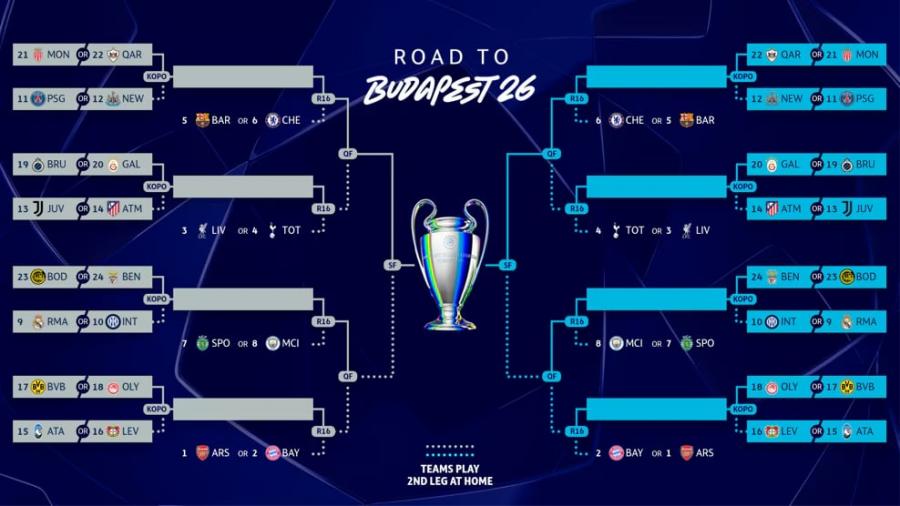 Pley-offun görüşləri 17/18 fevral və 24/25 fevralda keçiriləcək. 1/8 final matçları isə 10/12 mart və 17/19 mart tarixlərində oynanılacaq.