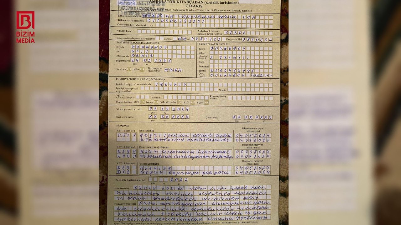 “Hara müraciət etmişəmsə, bir qurum digərinin üstünə göndərib. Konkret hansı sənədin lazım olduğunu demirlər, natamam doldurma bəhanəsi ilə başlarından edirlər. Dəfələrlə Goranboy rayon Mərkəzi Xəstəxanasına getmişəm, lakin əlilliyim bərpa olunmadı. Bundan sonra bağırsaq yarası xəstəliyim var, buna dair sənədlər topladım, təqdim etdim, əlillik təyin olunmadı.
