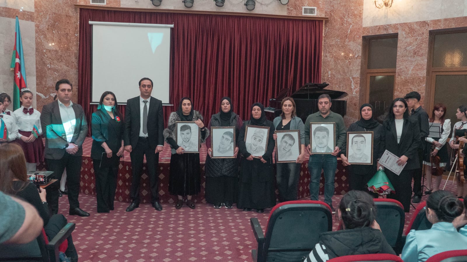 Moderator.az xəbər verir ki, 6 noyabr 2025-ci il tarixində 24 nömrəli Onbirillik Musiqi Məktəbində Zəfər Gününə həsr olunmuş tədbir keçirilib. Tədbirdə şəhid ailələri, məktəbin müəllim və şagird kollektivi, həmçinin qonaqlar iştirak ediblər. Tədbirin məqsədi Vətən müharibəsində qəhrəmancasına şəhid olmuş igidlərimizin xatirəsini anmaq, onların ailələrinə hörmət və minnətdarlığı ifadə etmək olub. Tədbir zamanı şəhid ailələrinə 400-dən artıq şəhidin şəkilini çəkərək hədiyyə edən rəssam Əminə Feyziyeva tərəfindən portretlər təqdim olunub.