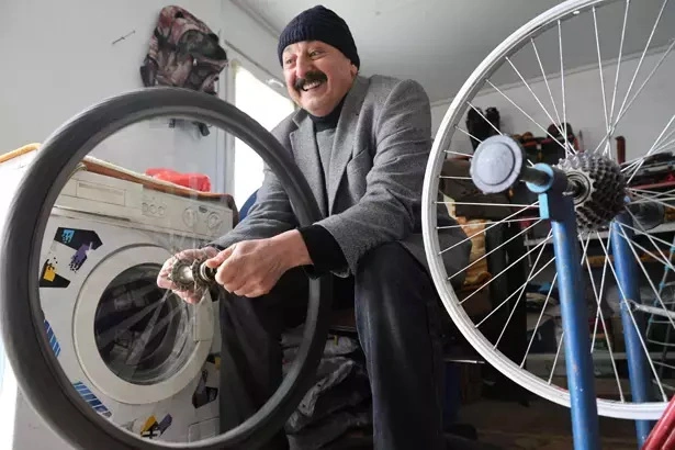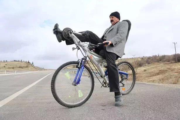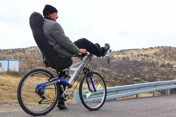 "26 il Almaniyada qaldım. Türkiyəyə qayıtdıqdan sonra 15 il boyunca velosiped işi ilə məşğul oldum. Əsas peşəm elektrik və elektronika sahəsidir, amma bu işdən kifayət qədər gəlir əldə edə bilmədiyim üçün velosiped sektoruna yönəldim. Hər gün velosiped işi ilə özümü təmin edirdim. Xüsusilə qış aylarında boş vaxtlarımı yeni dizaynlar üzərində sınaqlar edərək keçirirdim. Bir yüksək velosiped hazırladım və gördüm ki, insanı heç yormur. Saatlarla sürsəm belə problem olmur. Normal velosipedim var, onu sürdükdə yarım saat sonra mütləq istirahət etməli oluram. Bu yeni dizayn isə elə rahatdır ki, sanki adam boyu bir insan çiyinlərimdə gəzir."