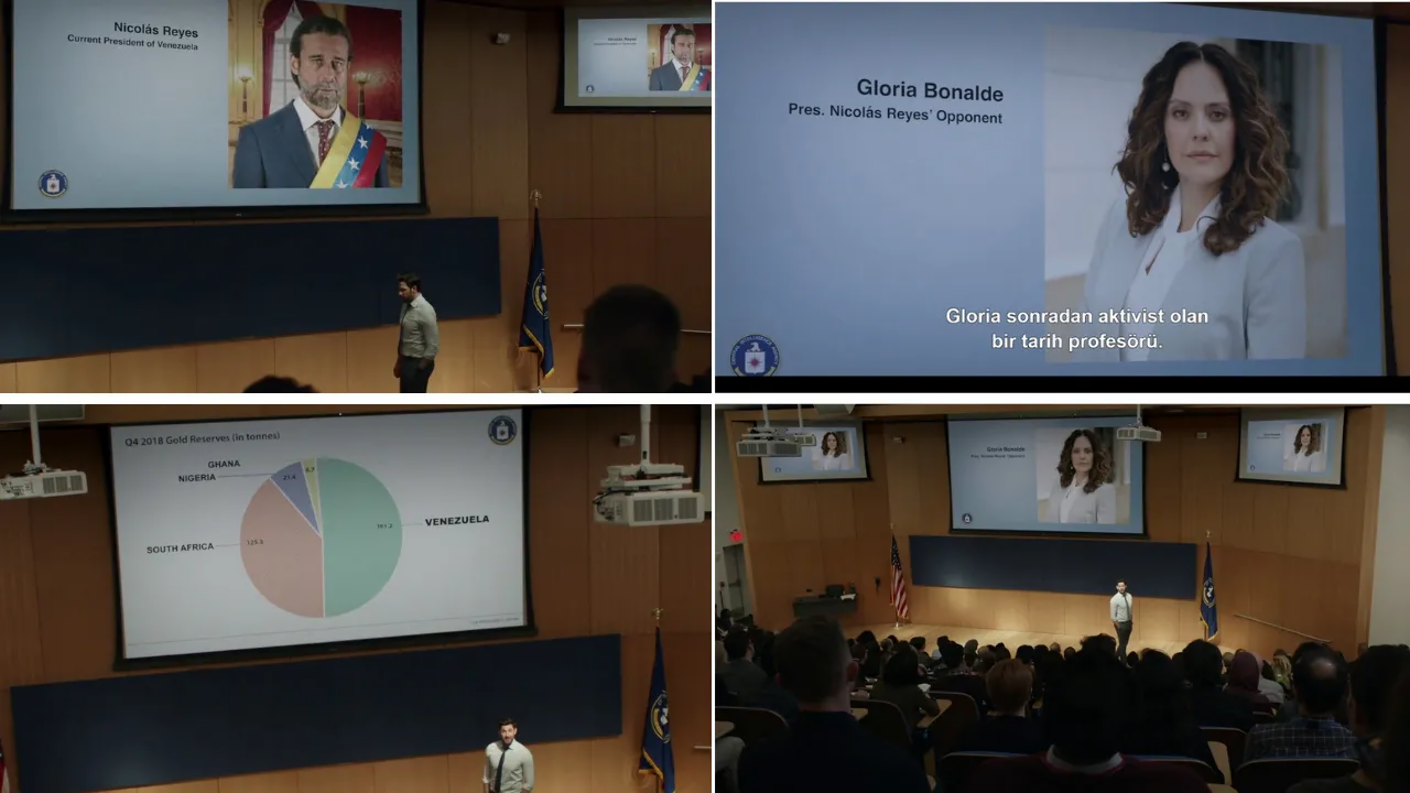 Serialda obrazı canlandıran aktyor ABŞ və dünya üçün ən böyük təhlükənin Rusiya ilə Çinin yaxud Şimali Koreyanın deyil məhz Venesuelanın olduğunu bildirir. Bundan başqa dünyada ən zəngin neft və qızıl mədənlərinin də sözügedən ölkədə olduğu xüsusi diqqətlə vurğulanır.