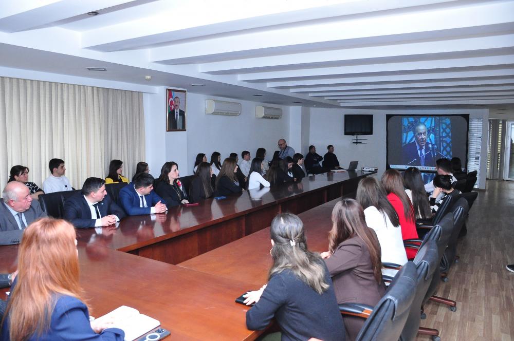 Tədbirdən əvvəl Ümummilli lider Heydər Əliyevin abidəsi ziyarət olunub, önünə gül dəstələri düzülüb, əziz xatirəsi ehtiramla yad edilib.