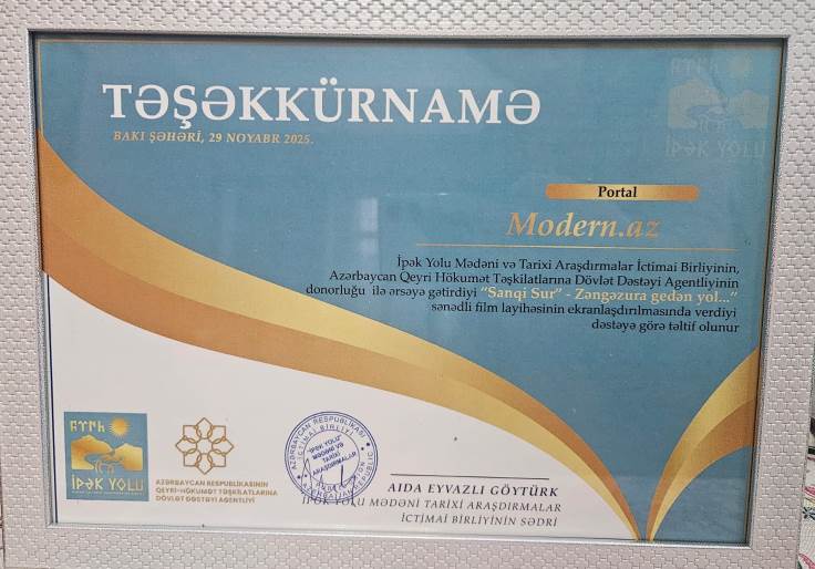 Sonda filmin ekranlaşdırılmasına dəstək verən qurumlara "Təşəkkürnamə" təqdim olunub. Təltif olunanlar arasında Modern.az da yer alıb.