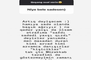 “Cebheinfo.az” xəbər verir ki, aktrisa “Instagram” hesabında izləyiciləri ilə sual-cavab edib.