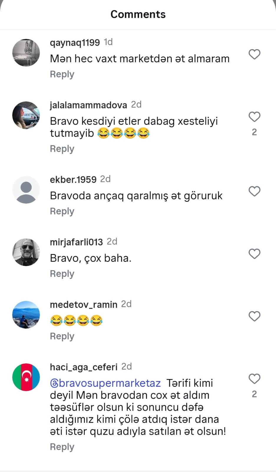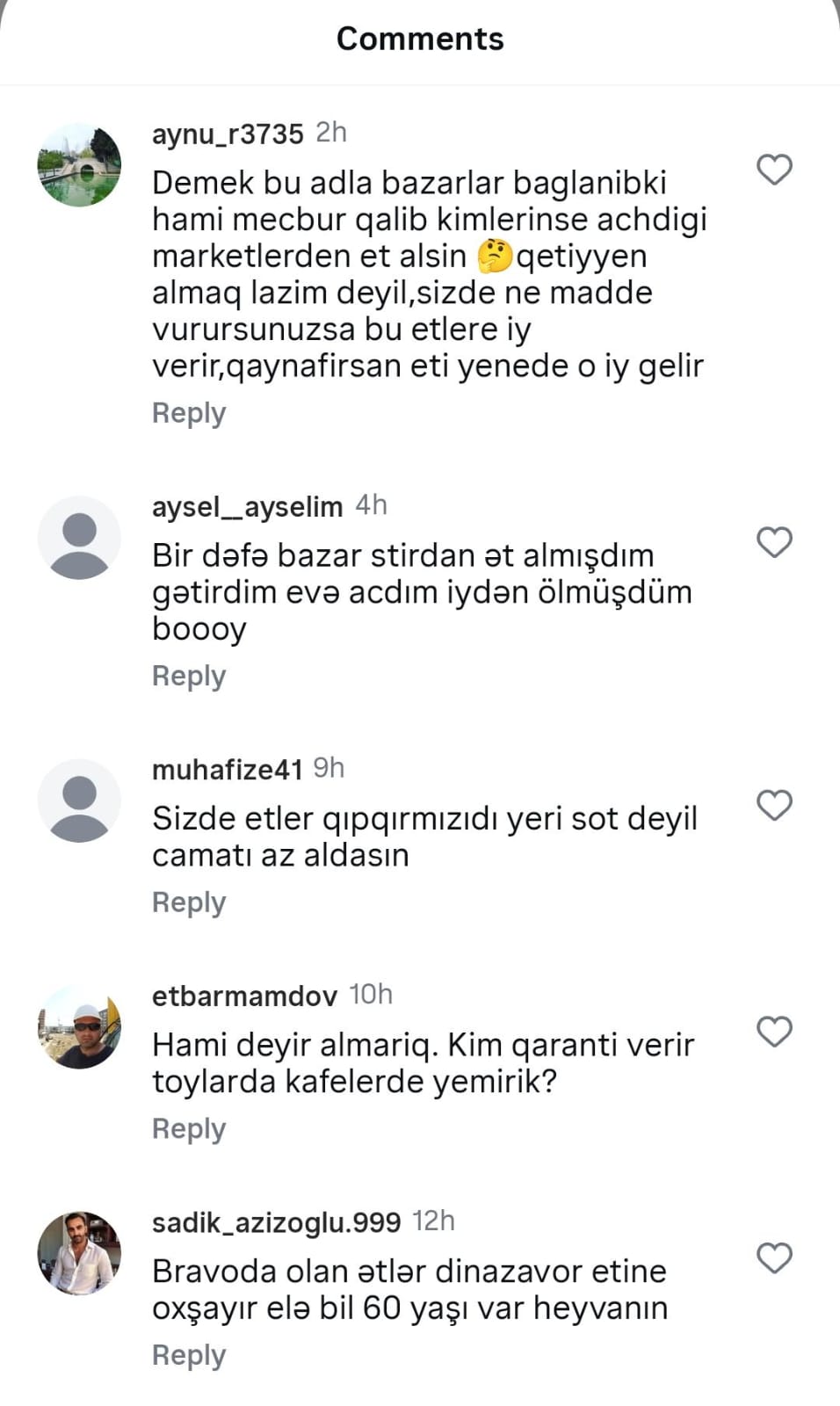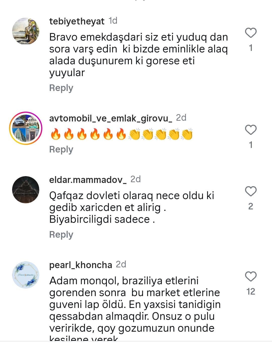 “Bravo”nun “təhlükəsiz ət” videosuna gələn müştəri şərhlərini oxucularımıza da təqdim edirik: