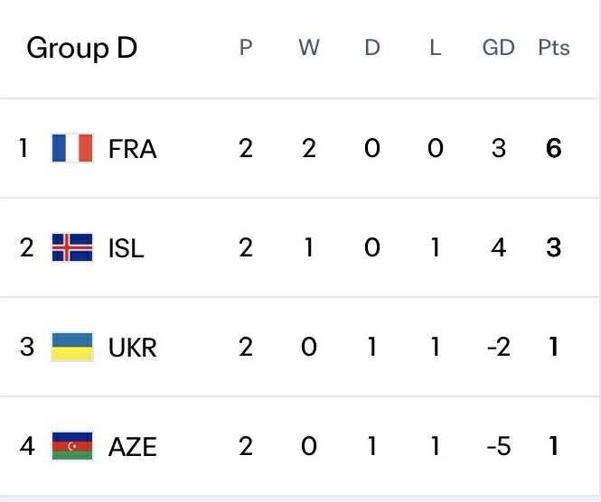 D qrupunda Azərbaycan millisi Fransanın qonağı olacaq. Bu qrupun digər matçında isə İslandiya evdə Ukraynanı qəbul edəcək.