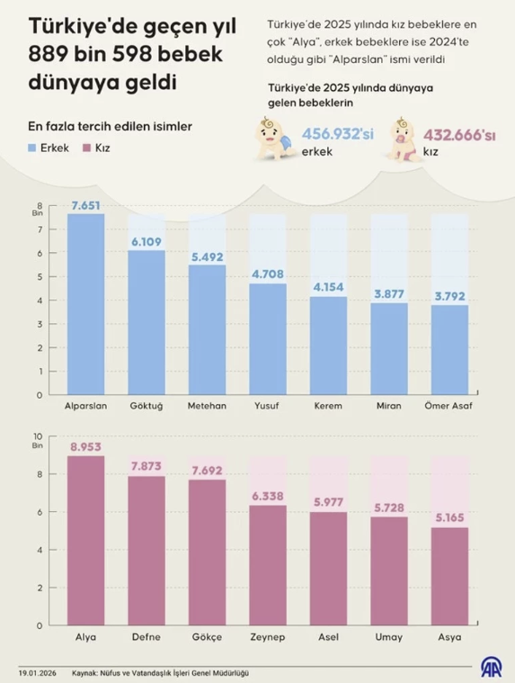 Türkiyədə 2025-ci ildə qız uşaqlarına qoyulan ən populyar ad “Alya” olub.