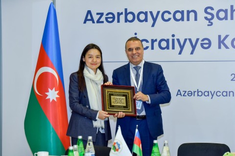 AŞF prezidenti ikiqat dünya çempionu, Ümumdünya Şahmat Olimpiadasının qalibi Çju Çenə xatirə hədiyyəsi təqdim edib.