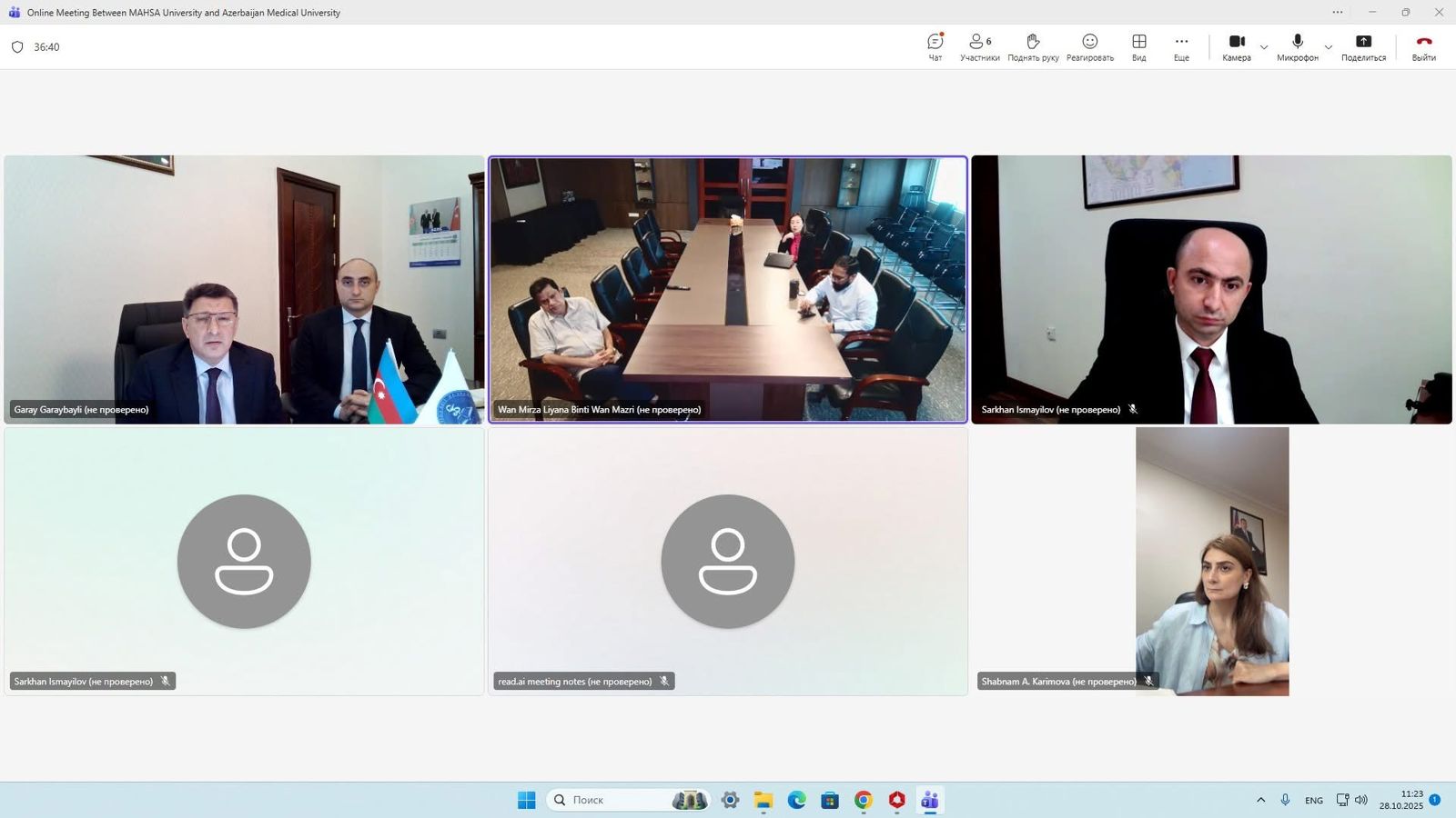 Görüşdə ATU-nun Beynəlxalq əlaqələr üzrə prorektoru dosent Orxan İsayev, Azərbaycanın Malayziyadakı səfirinin müşaviri Sərxan İsmayılov, birinci katibi Şəbnəm Kərimova, Mahsa Universitetindən Dato Dr. Shahril Bin Prof. Tan Sri Datuk Dr. Haji Mohamed Haniffa iştirak ediblər.