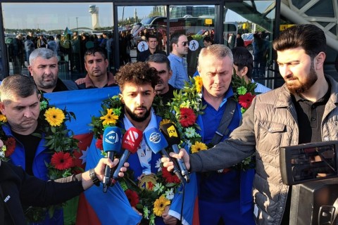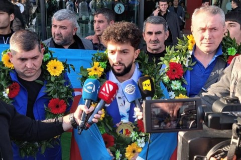 Avropa çempionatının qızıl medalçısı İsa Rüstəmov vətənə qayıdıb FOTO