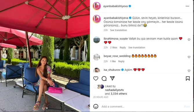 Müğənni Ayan Babakişiyevanın sosial şəbəkə paylaşımı marağa səbəb olub.