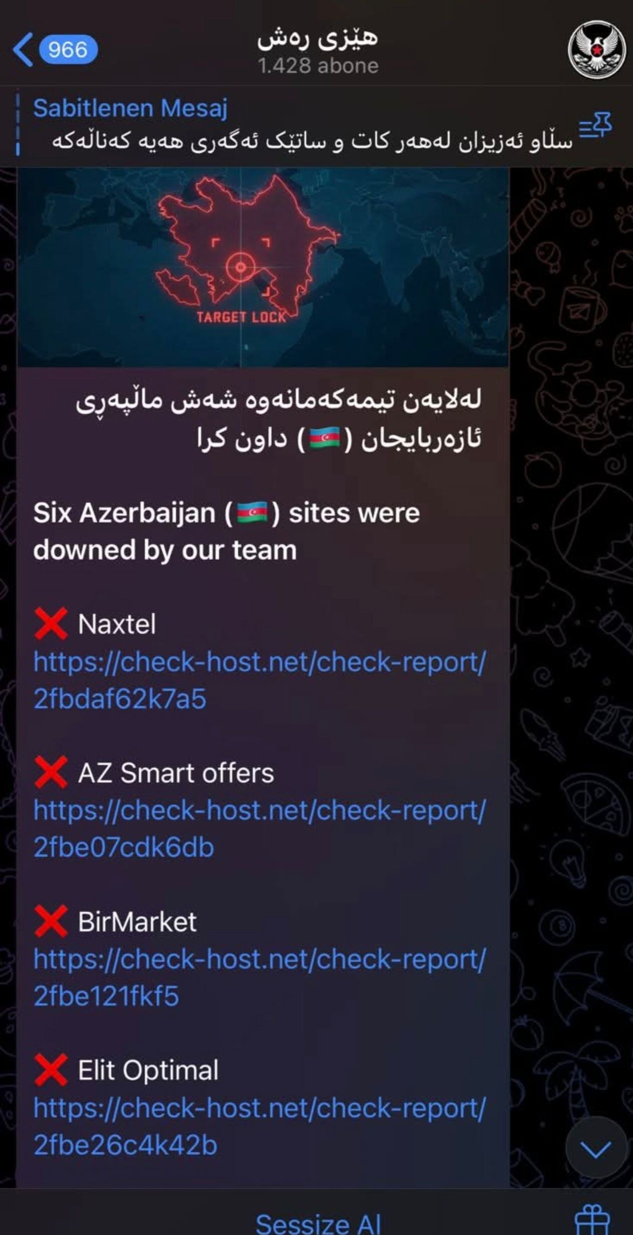 “Hezi Rash Group tərəfindən Azərbaycan informasiya sistemlərinə DDoS hücumlar başlayıb”.