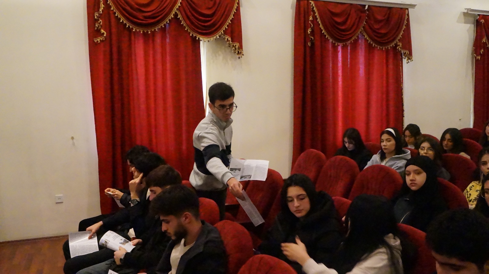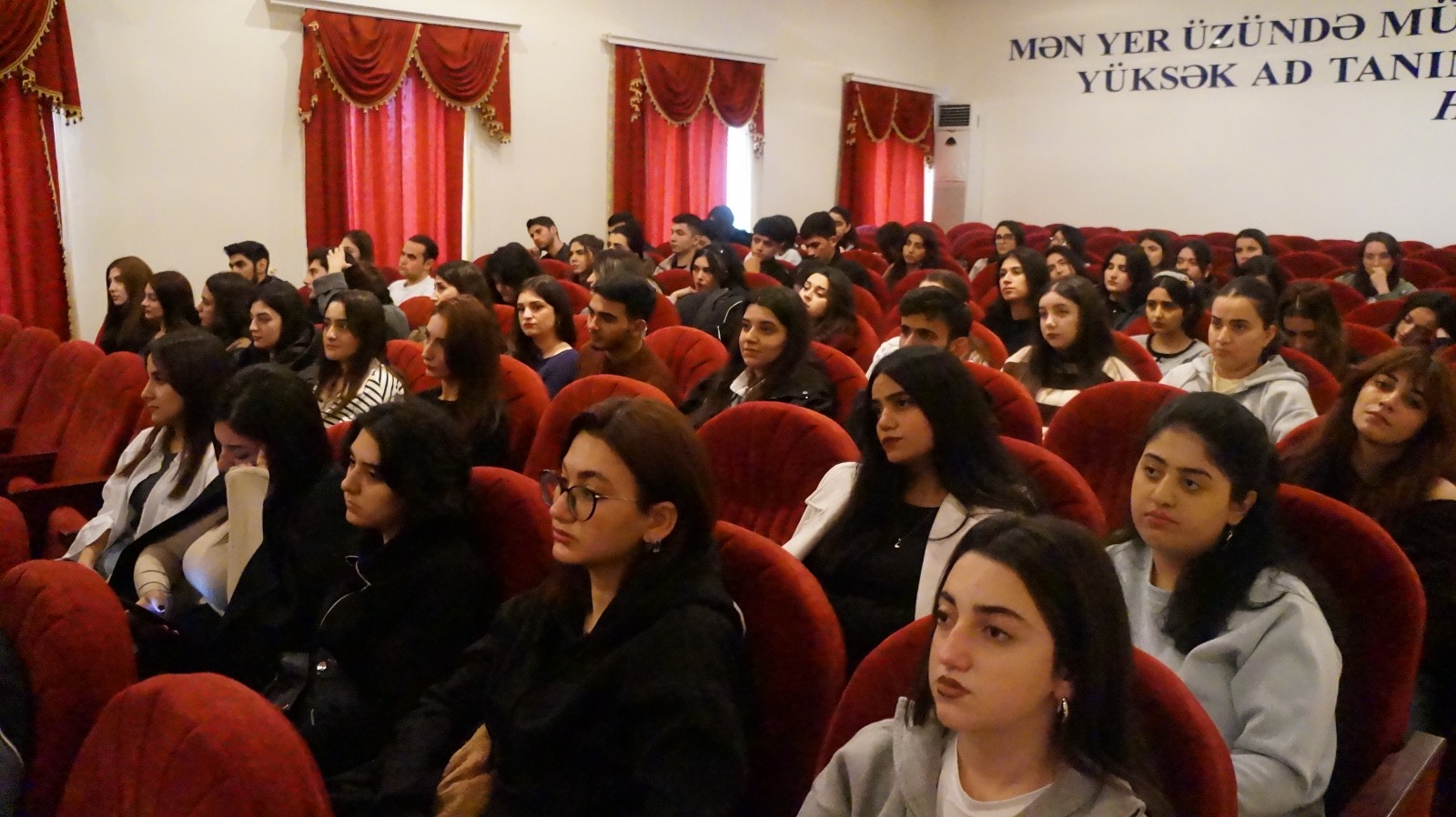 Tədbir Azərbaycan Respublikasının dövlət himninin səslənməsinin ardınca şəhidlərimizin əziz xatirəsini yad etməklə başladı.Tədbiri Unversitetin müəllimi Aytən xanım açaraq tələbələrə ilkin məlumat verdikdən sonra sözü “Tərxis Olunmuş Hərbçilərin Gəncləri Maarifləndirmə” İctimai Birliyinin sədri və “Tarixi Zəfərin ideoloji əsaslarının gənclər arasında təbliği” adlı layihənin rəhbəri Emin Həsənliyə verdi. Emin Həsənli iştirakçıları salamlayaraq bildirdi ki, 44 günlük vətən müharibəsində ordumuzun qazandığı zəfərin bu il 5 illik yubleyidir. Azərbaycan tarixinə qızıl həriflərlə yazılan bu qəhrəmanlıq səlnaməsi haqqında hazırkı həssas dövürdə gənclər arasında maarifləndirici görüşlərin keçrilməsi çox əhəmiyyətlidir. Qlobal miqyasda təhlükəsizlik risklərinin və xarici təhdidlərin artdığı bir zamanda gənclərdə özünə inam hissinin aşlanmasına böyük ehtiyac vardır. Layihə çərçivəsində ordumuzun qəhrəmanlığını tərənnüm edən sənədli film hazırlanıb bu gün o sənədli filmədə baxacayıq və bir daha ordumuzun qəhrəmanlığından xəbərdar olacayıq. Bu layihənin həyata keçrilməsinə maliyyə dəstəyi göstərən Azərbaycan Respublikasının Qeyri-Hökumət Təşkilatlarına Dövlət Dəstəyi Agentliyinə öz dərin təşəkkürümü bildirirəm. Biz uzun illərdir bir QHT olaraq Agentliyin maliyyə dəstəyi ilə bu qəbildən olan layihələr icra edirik. Sonra söz layihənin eksperti,Qarabağ qazisi Taleh Əliyevə verildi. Ekspert gənlərimiz arasında tarixi zəfərin ideoloji əsaslarının təbliğ edilməsinin əhəmiyyətindən danışaraq bildirdi ki, ordu dövətin suverenliyinin və təhlükəsizliyinin əsas qarantıdır. Güclü ordusu olan ölkəyə düşmən hücum edə bilmir. Bu gün Azərbaycan ordusu məhz belə bir qüdrətli ordudur. Daha sonra sənədli filmə baxış olduqdan sonra tədbir tələbə gənclərin suallarının cavablandırılmasından sonra başa çatdı.