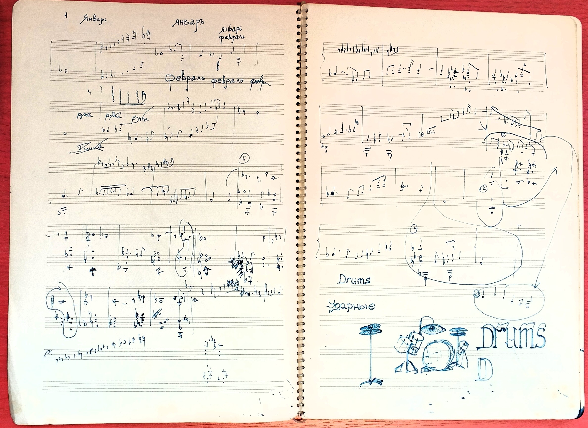 İki not dəftərinin səhifələrində bədii “opuslar” da əks olunub. Burada not işarələri kiçik eskizlərlə yanaşı durur.