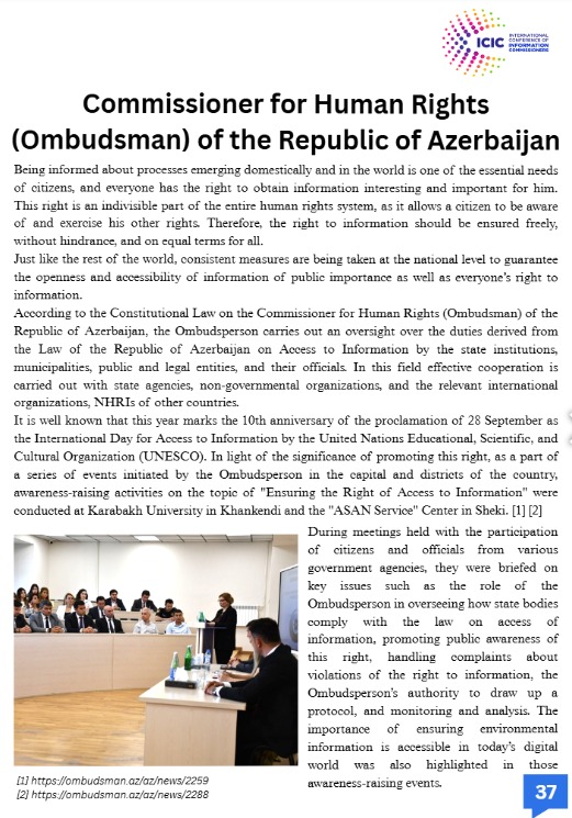 Azərbaycan Ombudsmanın informasiya əldə etmək hüququnun təmini sahəsində fəaliyyətini əks etdirən məlumatlar ICIC in xüsusi buraxılış bülletenində yer alıb