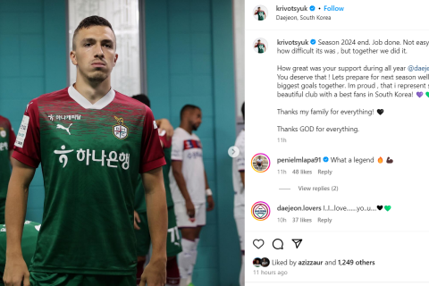 Krivotsyuk komandanı təmsil etməkdən fəxr hissi keçirdiyini bildirib: "2024 mövsümü bitdi. Vəzifəmizin öhdəsindən gəldik. Bunu necə bacardığımızı demək çətindir, amma birlikdə bacardıq. Mövsümboyu sizin dəstəyiniz əla idi. Siz buna layiqsiniz. Gəlin, növbəti mövsümə daha yaxşı hazırlaşaq və birlikdə hədəfə doğru irəliləyək. Cənubi Koreyanın ən yaxşı azarkeşləri olan klubunda çıxış etməkdən fəxr hissi keçirirəm".