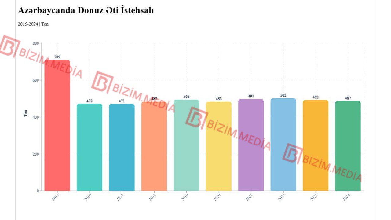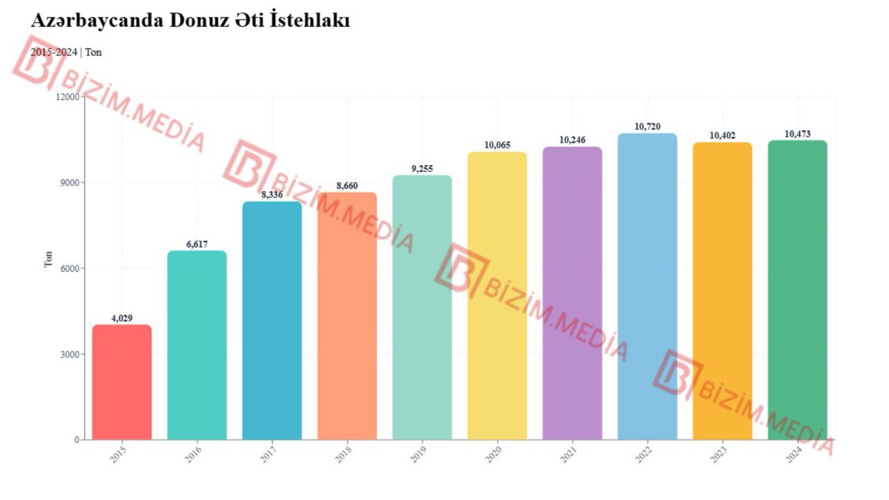 Onu da qeyd edək ki, hazırda Azərbaycanda donuz əti ehtiyatların ümumi həcmi 10 812 tondur. 2015-ci ildə bu rəqəm 4 135 ton olub.