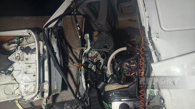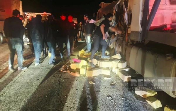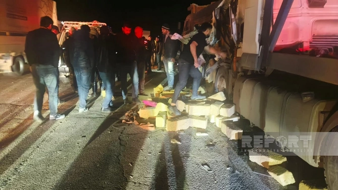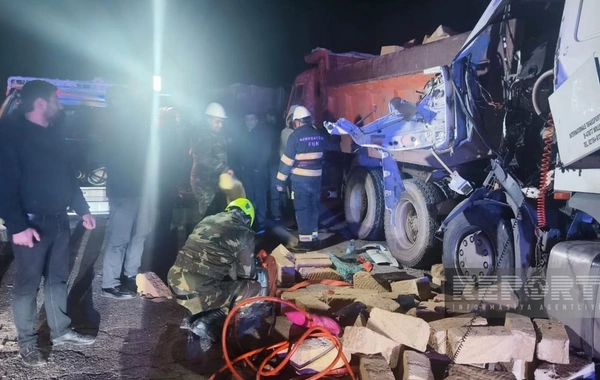 Belə ki, "DAF" markalı yük maşını qarşısında hərəkət edən digər yük avtomobili olan "KAmaz"a çırpılıb.
