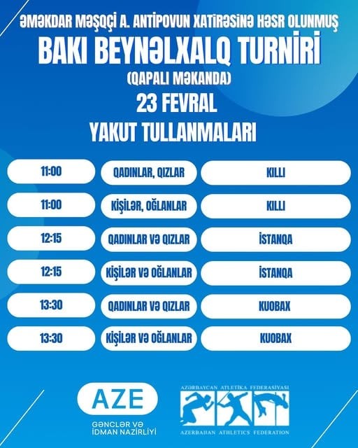 Əməkdar məşqçi Aleksandr Antipovun xatirəsinə həsr olunmuş Bakı Beynəlxalq Turnirinin təqvimi bəlli olub.