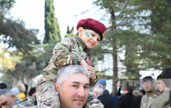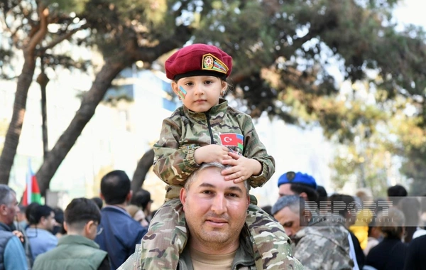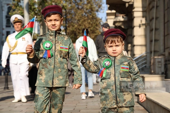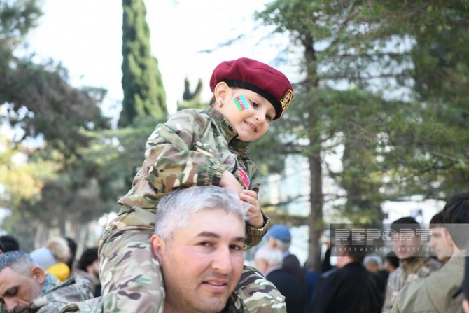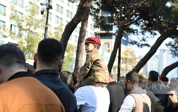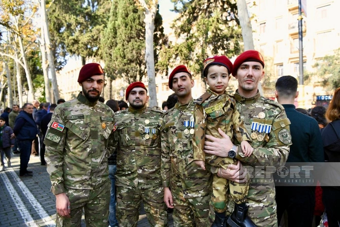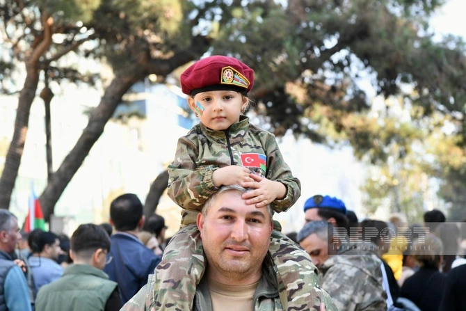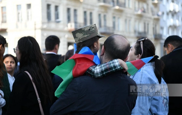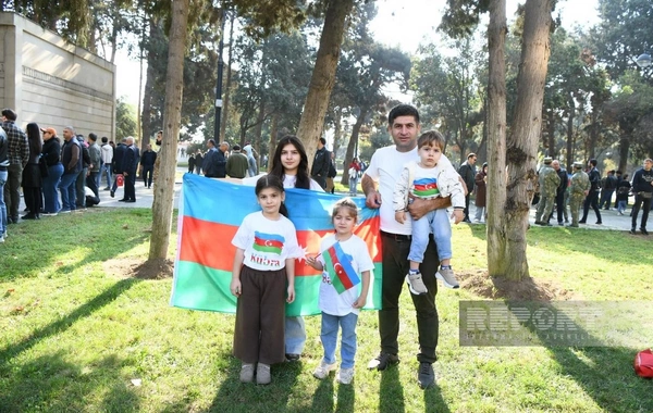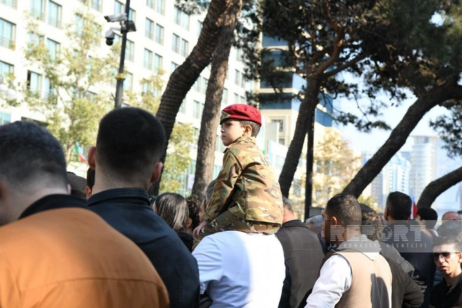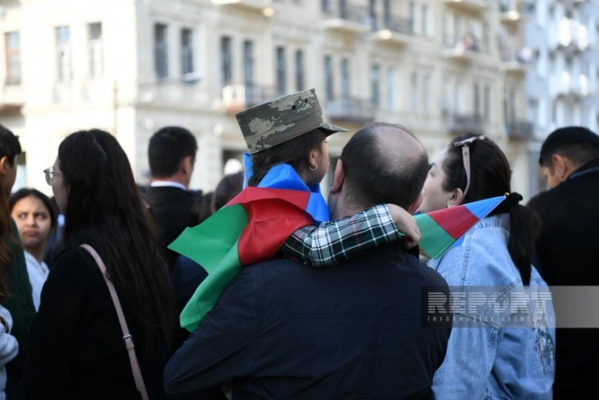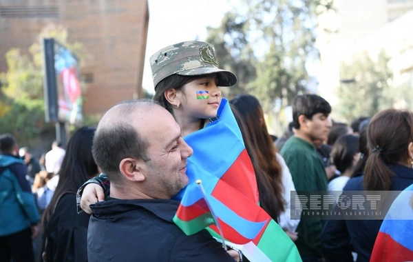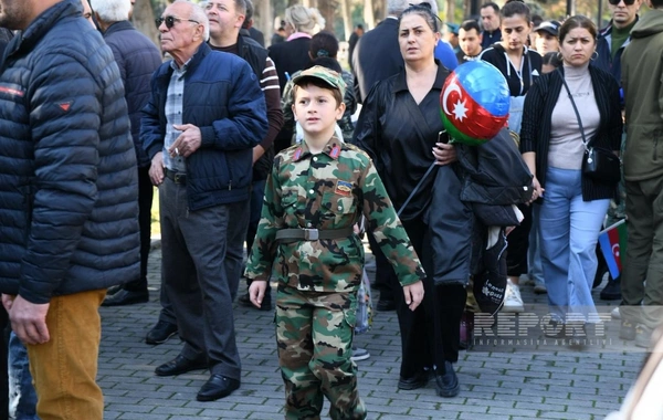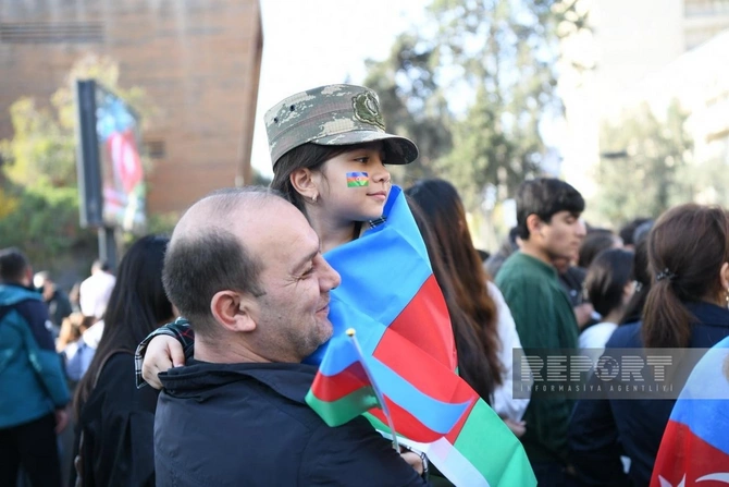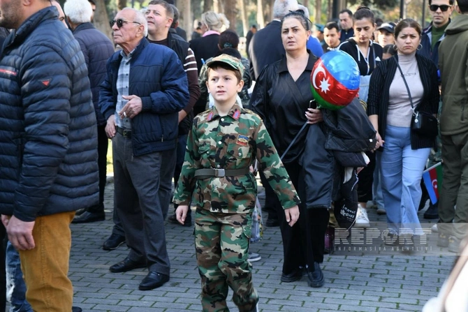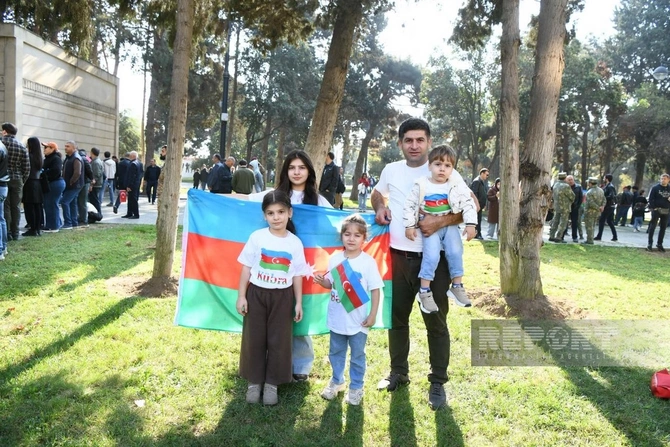 BAKU.WS report-a istinadən xəbər verir ki, şəhər sakinləri Azərbaycan bayraqları ilə küçələrə çıxaraq şəhidlərin xatirəsini anır, ordunun qəhrəmanlığını qürurla xatırlayırlar.