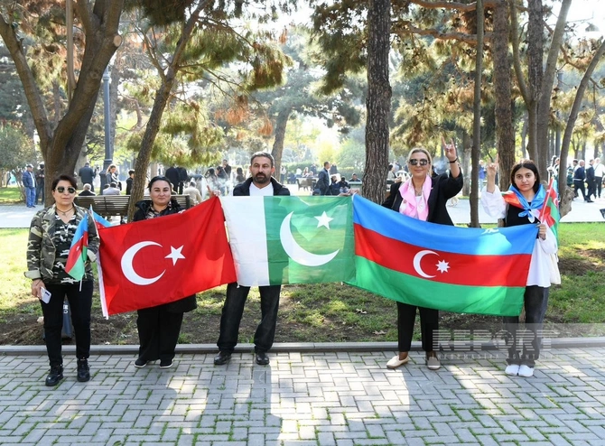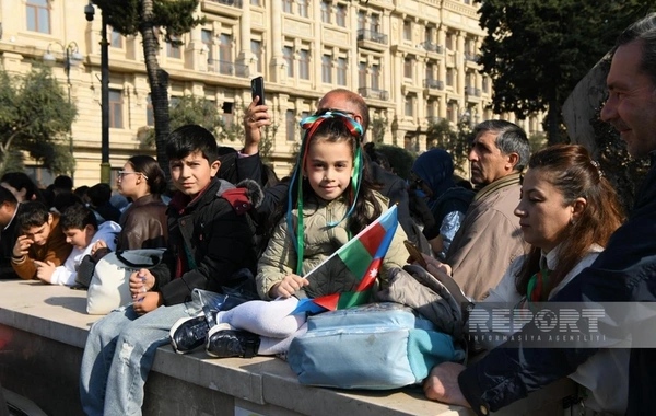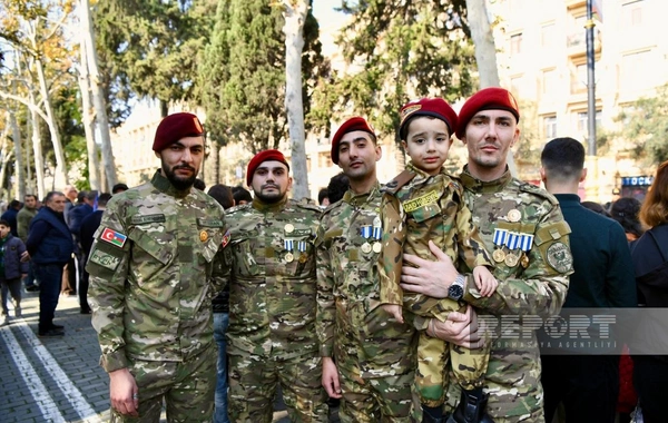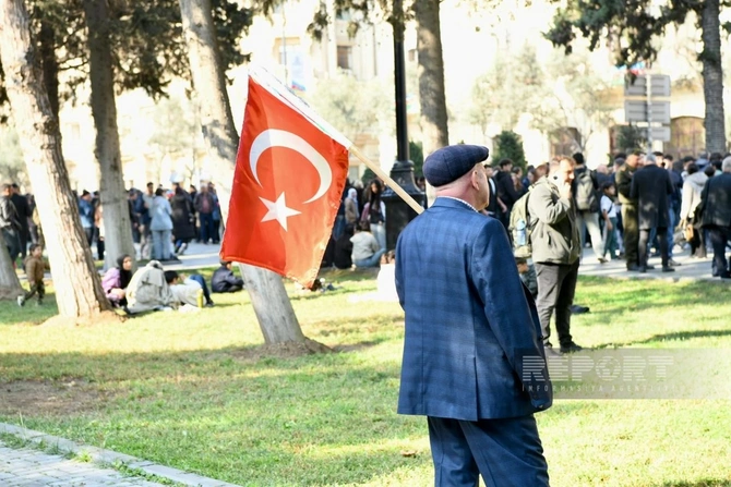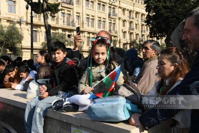 Paytaxt Bakının müxtəlif küçə və meydanlarında insanlar 8 Noyabr - Zəfər Gününü coşqu ilə qeyd edirlər.
