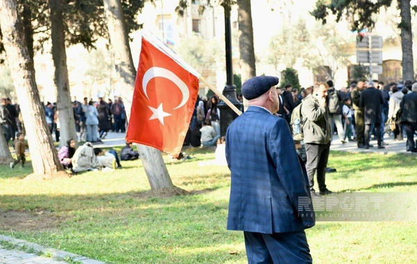 Mərkəzi prospektlərdə musiqilər səslənir, insanlar əlində bayraq və plakatlarla Zəfər yürüşləri keçirirlər.