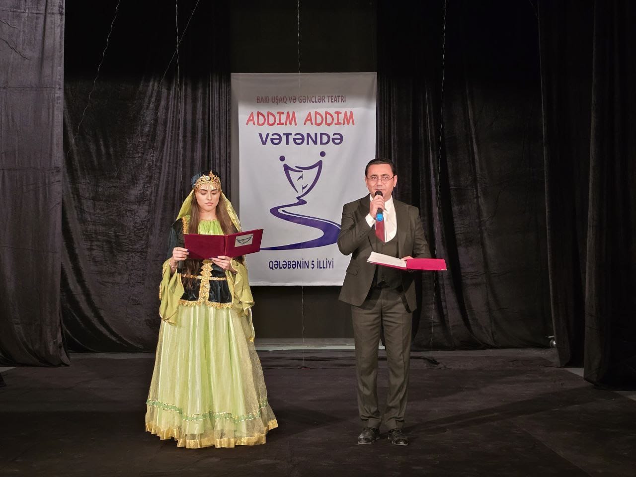 “ADDIM-ADDIM VƏTƏNDƏ” layihəsinə verdiyi dəstəyə görə təşəkkürnamə təqdim edib. Füzuli Dövlət Dram Teatrının direktor əvəzedicisi Azər Abbasov isə Bakı Uşaq və Gənclər teatrına Fəxri Fərman təqdim edib.