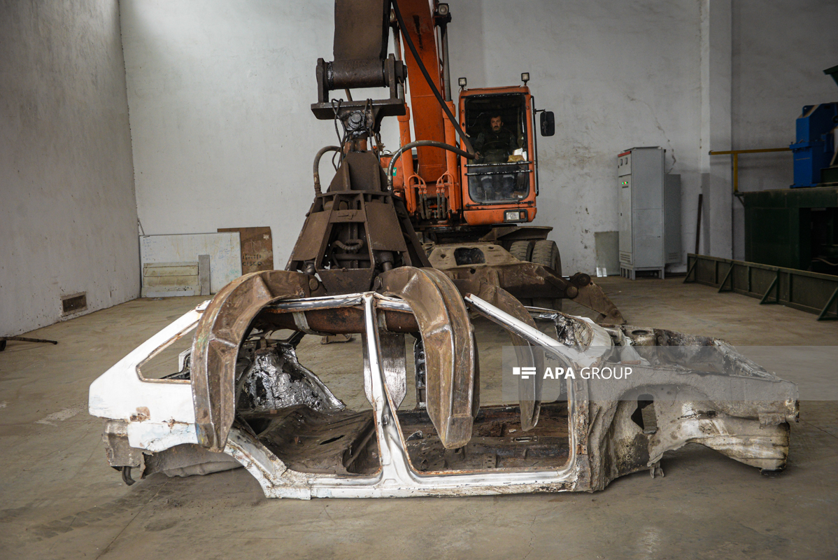 - Aylıq 600-ə yaxın. Utilizasiya prosesi müəssisəmizdə ekoloji tələblərə cavab verən, yüksək texnoloji vasitələrlə aparılır. Nəqliyyat vasitəsi müəssisəmizə daxil olduqdan ilk növbədə onun üzərindəki təhlükəli tullantılar xüsusi vasitələrlə ayrılır. Buraya akkumulyator, yanacaq və sürtgü materialları aiddir. Bundan sonra nəqliyyat vasitəsini metal hissələrə ayırmaq üçün xüsusi şreyderə atılır. Həmin texnika onu əlvan və qara metal olmaqla, hissələrə ayırır.