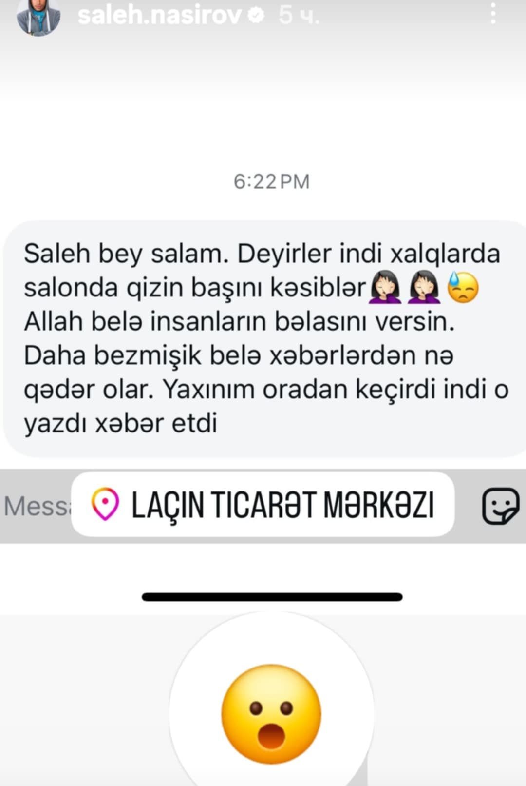 Bakupost.az xəbər verir ki, bu barədə bloger Saleh Nəsirov paylaşım edib.