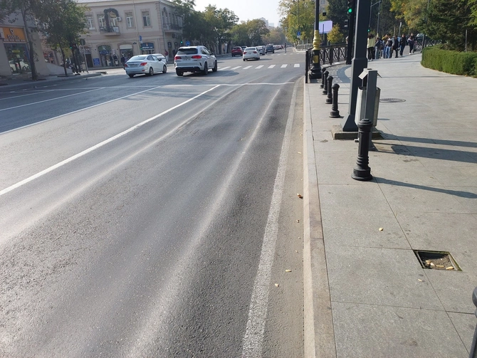 Lakin 2025-ci ilin noyabrına olan vəziyyət göstərir ki, küçənin Puşkin istiqamətinə yaxın hissəsində asfalt səthində dalğalanmalar yaranıb.