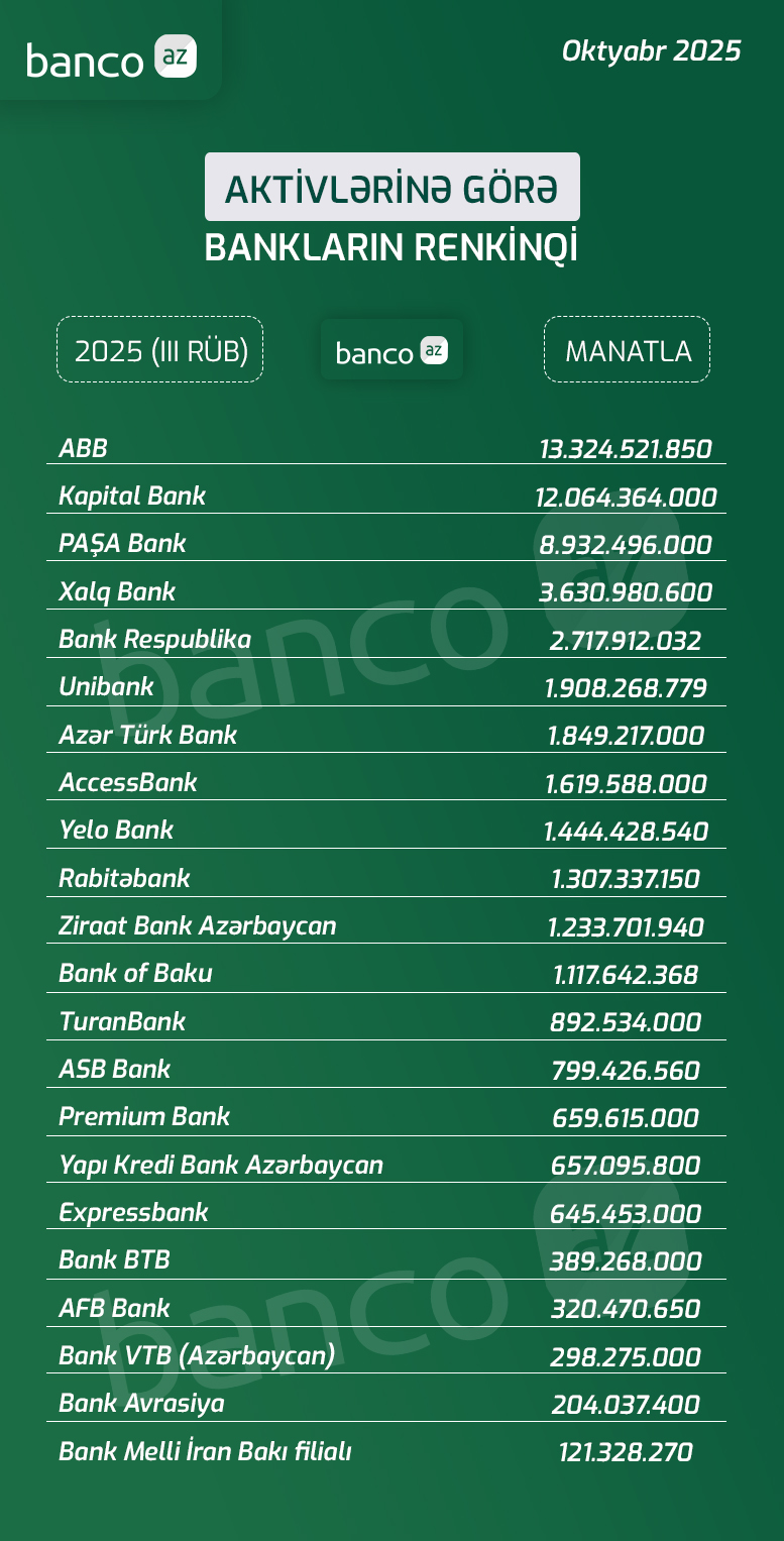 Bankların aktivlərinə görə renkinqi (III rüb, 2025)