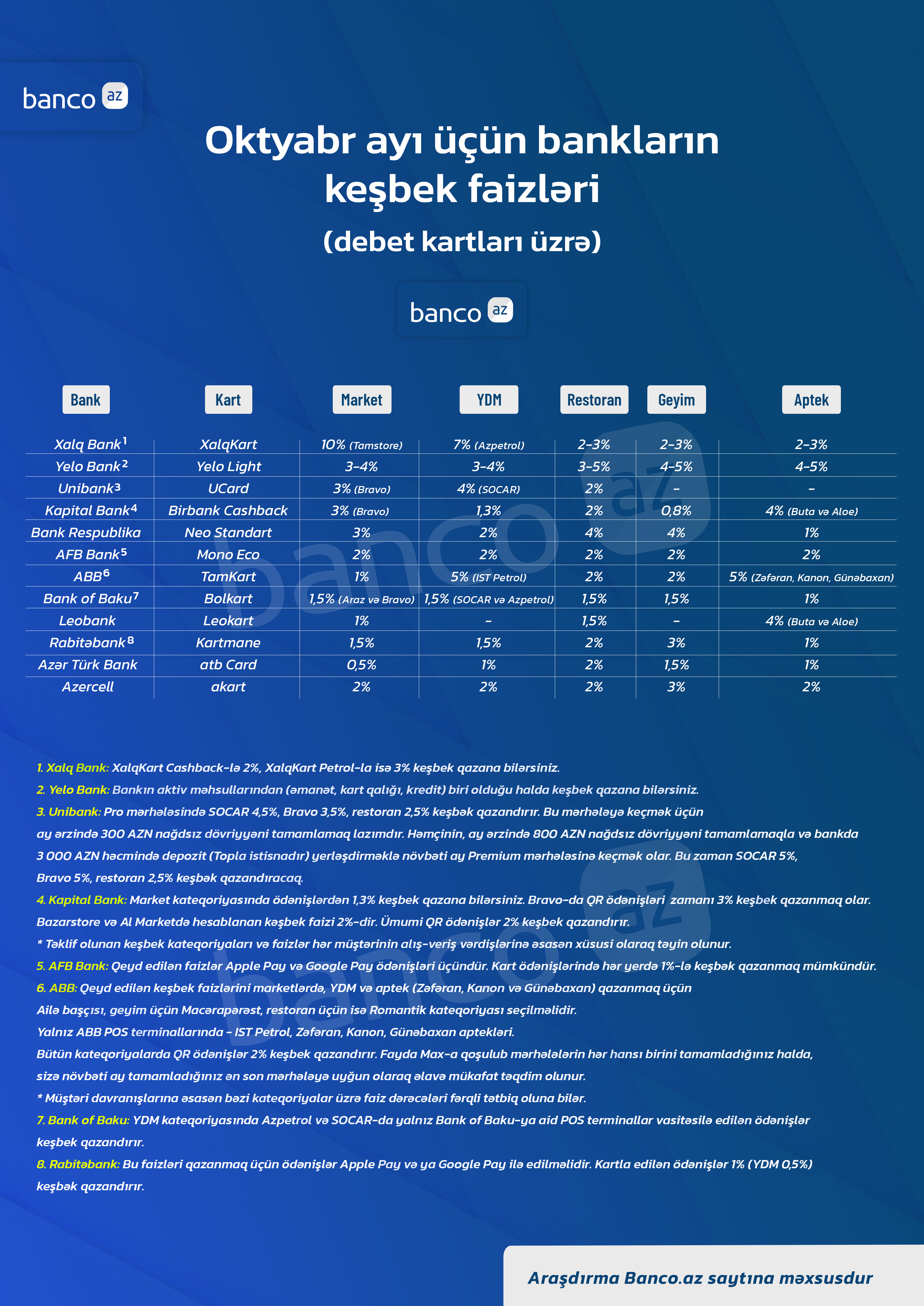 Hansı banklar cashback üçün daha sərfəlidir öyrənmək istəyirsinizsə, infoqrafikə nəzər sala bilərsiniz.