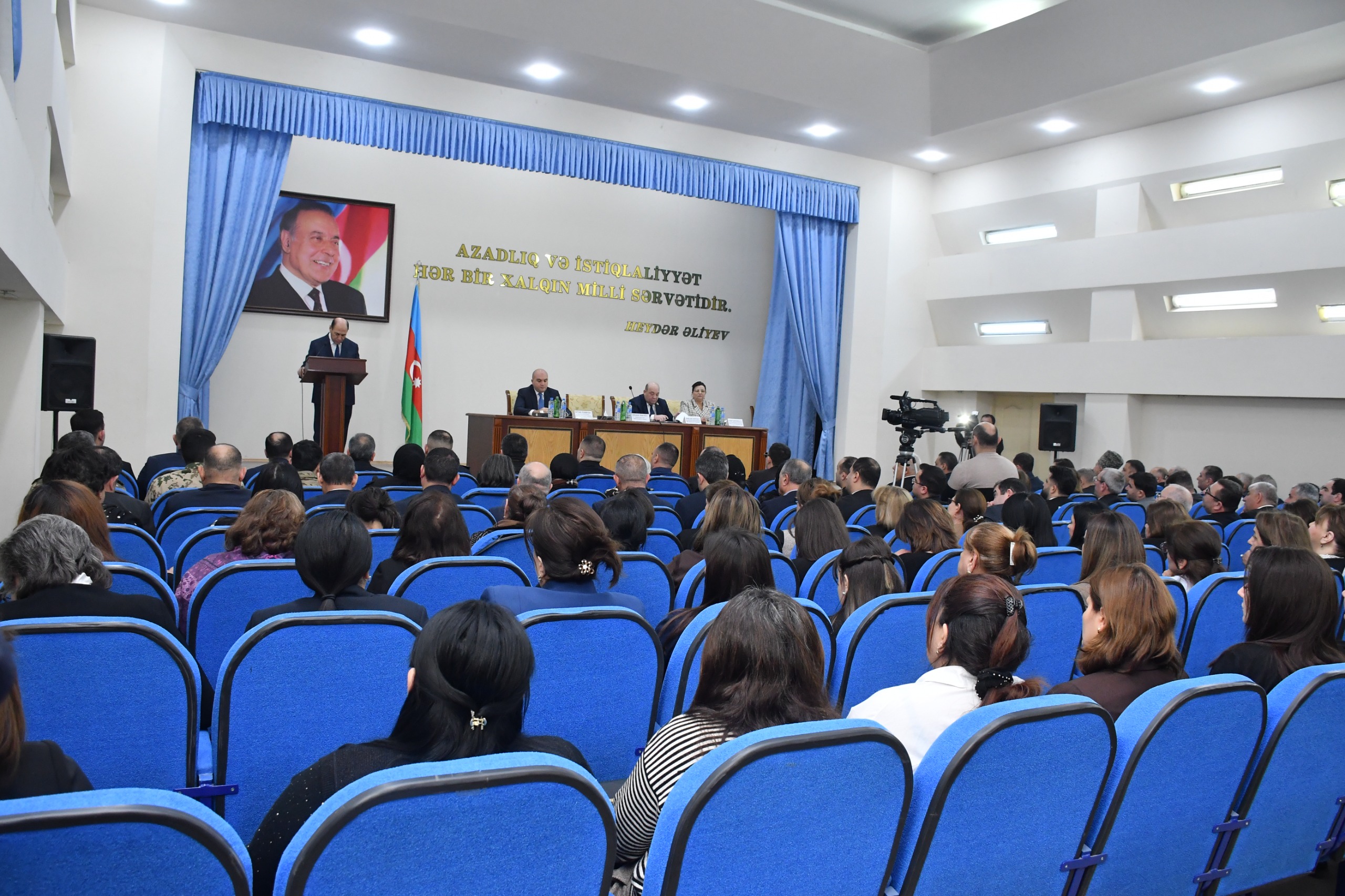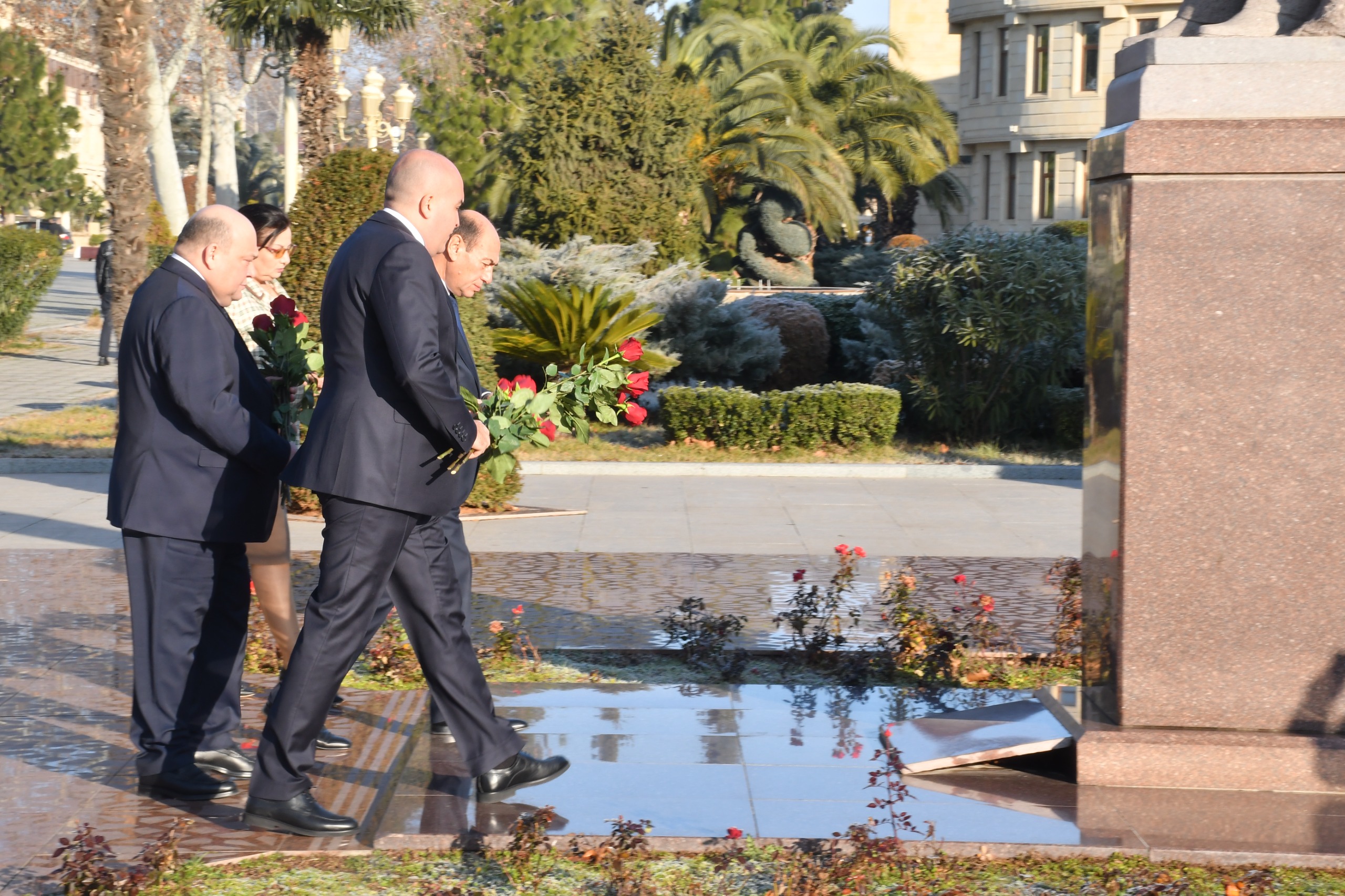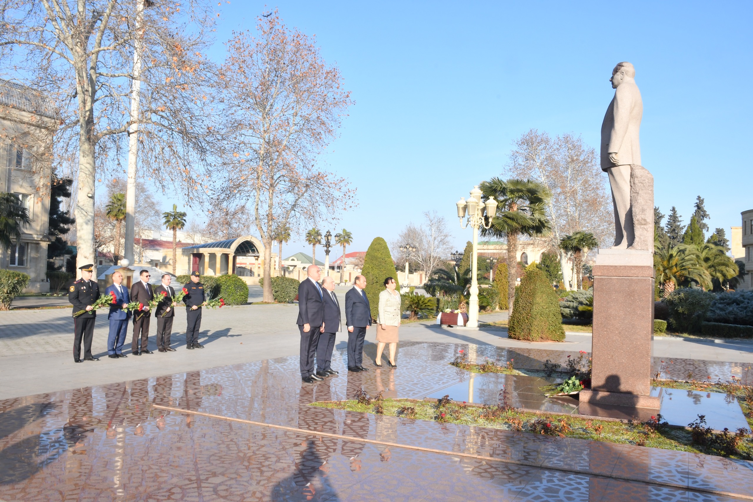 Tədbir iştirakçıları əvvəlcə Ulu Öndər Heydər Əliyevin abidəsini ziyarət edərək dahi şəxsiyyətin əziz xatirəsini ehtiramla yad edərək, abidənin önünə gül dəstələri düzüblər.