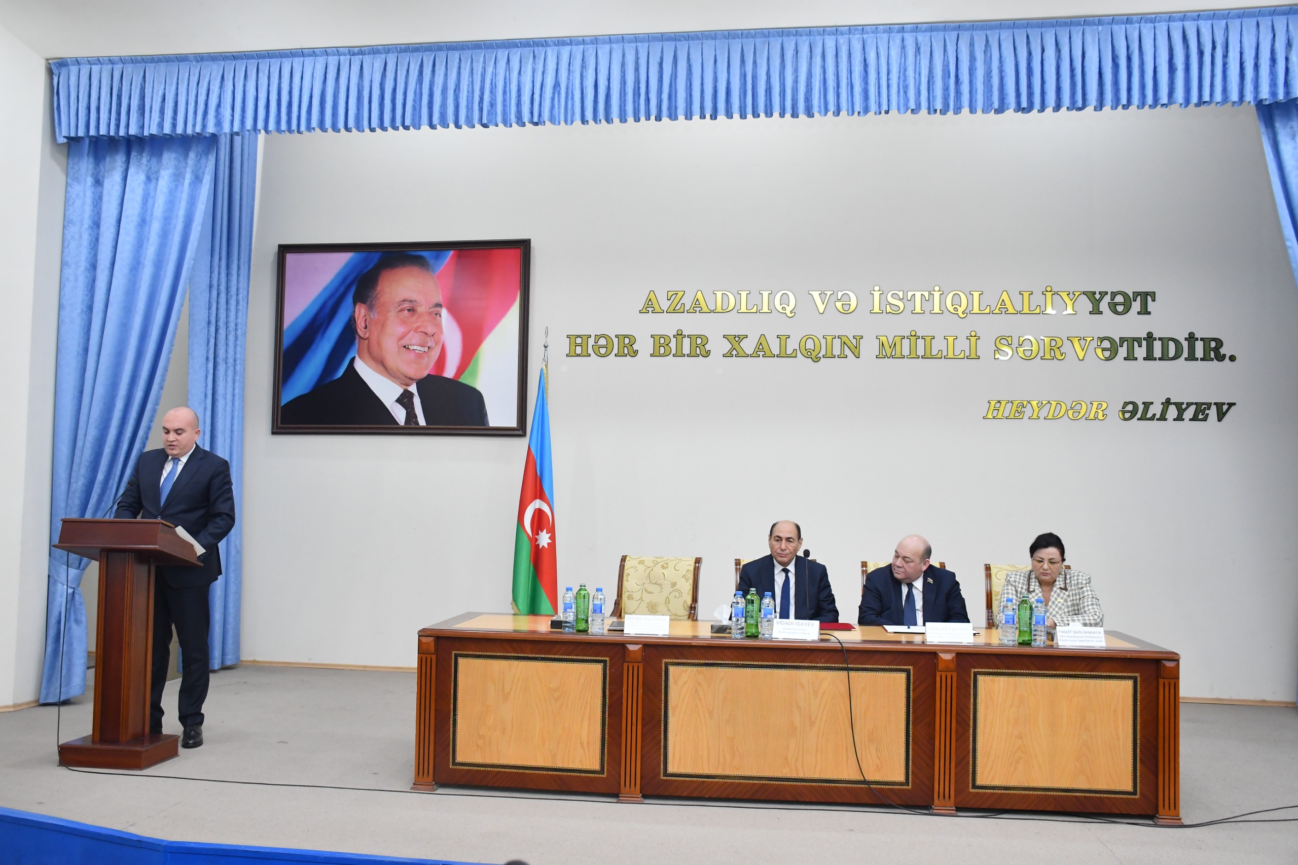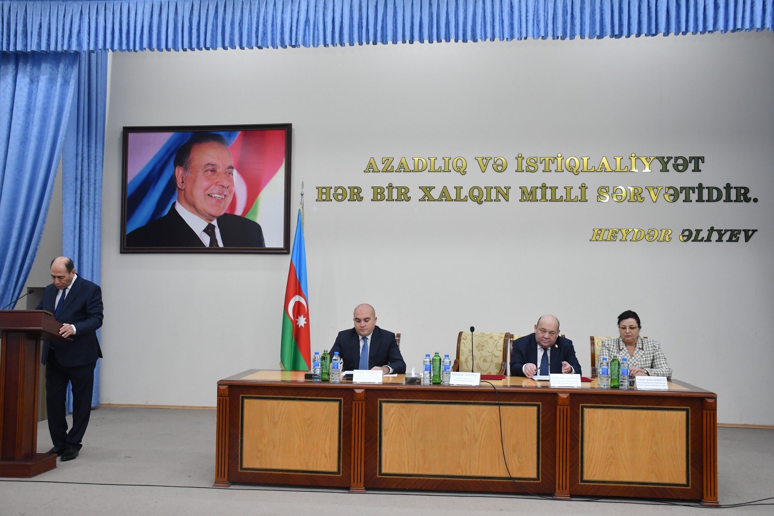 Tədbiri giriş sözü ilə açan Bərdə rayon İcra Hakimiyyətinin başçısı Vidadi İsayev çıxışında qeyd etmişdir ki, Ulu Öndər Heydər Əliyev tərəfindən formalaşdırılmış ölkəmizin davamlı inkişafını təmin edən dövlət idarəetmə modeli Prezident İlham Əliyevin rəhbərliyi ilə müasir dövrün tələblərinə uyğun şəkildə uğurla davam etdirilir.