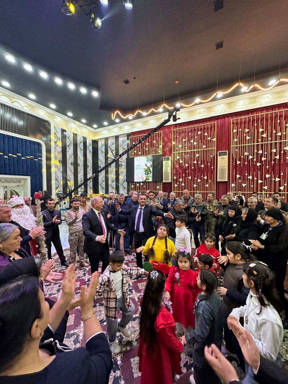 Bayram tədbiri Mil-Muğan Regional Mədəniyyət İdarəsinin Beyləqan rayon nümayəndəliyinin incəsənət xadimlərinin ifalarından ibarət zəngin bədii proqram ilə davam etdirilib, Yeni ilin personajları – Şaxta Baba və Qar qız səhnəyə çıxaraq şəhid övladlarını təbrik edib və onlar üçün maraqlı şou proqramı təqdim ediblər.