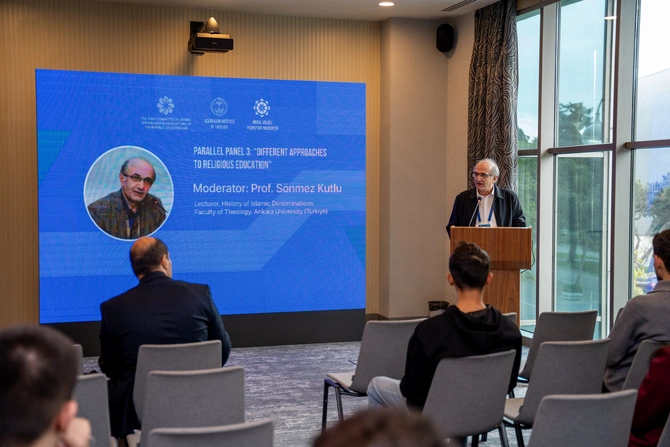 Paralel davam edən "Din təhsilinə müxtəlif yanaşmalar" adlı panel Ankara Universiteti İlahiyyat fakültəsinin İslam məzhəbləri tarixi müəllimi, professor Sönmez Kutlunun moderatorluğu ilə keçirilib. Paneldə AMEA-nın Fəlsəfə və Sosiologiya İnstitutu İslam fəlsəfəsi və dinşünaslıq şöbəsinin aparıcı elmi işçisi, fəlsəfə üzrə fəlsəfə doktoru, dosent Radif Mustafayev, AMEA-nın akademik Ziya Bünyadov adına Şərqşünaslıq İnstitutu Din və ictimai fikir şöbəsinin aparıcı elmi işçisi, ilahiyyat üzrə fəlsəfə doktoru, dosent Aslan Həbibov, Kırıkkale Universiteti İslam elmləri fakültəsinin müəllimi, fəlsəfə üzrə fəlsəfə doktoru Vahdeddin Şimşek, Azərbaycan İlahiyyat İnstitutu rektorunun köməkçisi, AMEA-nın Fəlsəfə və Sosiologiya İnstitutunun doktorantı Emin Orucov mövzu ilə bağlı fikirlərini bölüşüblər.