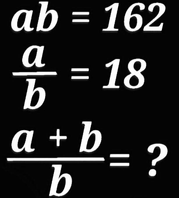 a/b=18 olduğunu bildiyimiz üçün sadəcə olaraq bu dəyəri daxil edə bilərik: 18+1=19