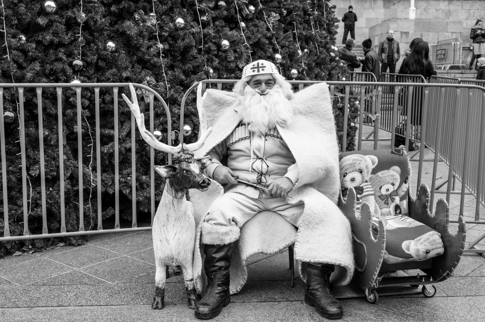 Santa Klaus (ABŞ, Kanada, Qərb ölkələri): Klassik qırmızı qısa gödəkçə və şalvar geyinən Santa maralların çəkdiyi kirşə ilə səmada dolaşır. Evlərə baca vasitəsilə daxil olur və hədiyyələri yolka altına və ya buxarıdan asılan corablara qoyur.