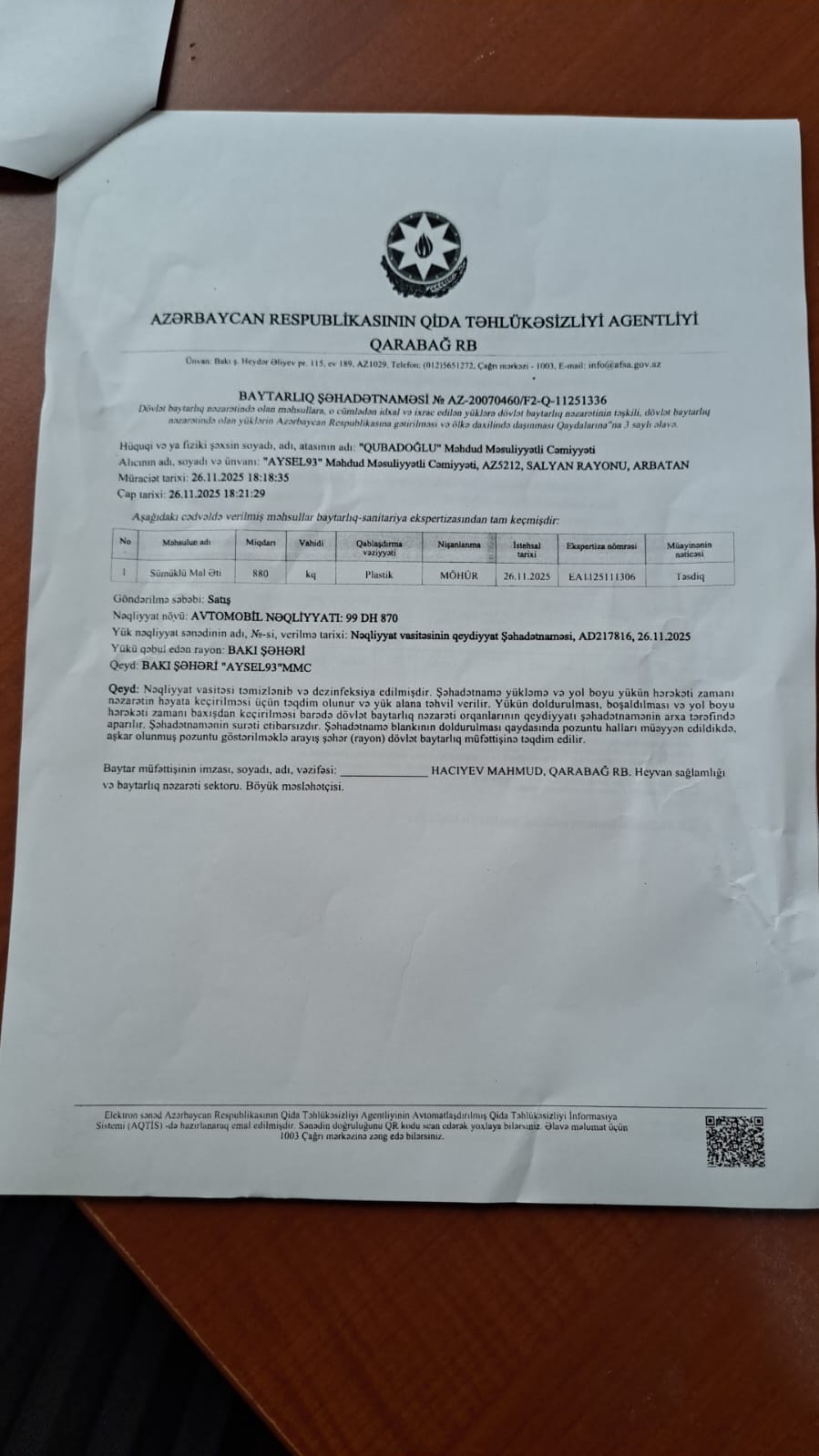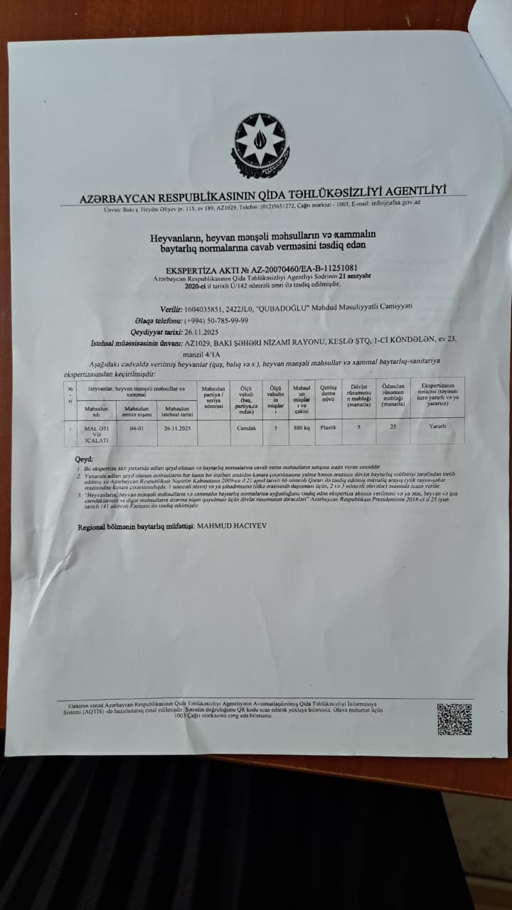 Eyni zamanda qida blokuna baxış zamanı məhsulların temperatur rejiminə, mal qonşuluğuna və istifadəyə yararlılıq müddətlərinə əməl olunduğu, istehlaka təqdim edilən çiy mal ətindən götürülmüş nümunələrin laborator müayinəsi nəticəsində isə hər hansı uyğunsuzluğun aşkar olunmadığı müəyyən edilib. Nəzarət tədbirləri davam edir”.