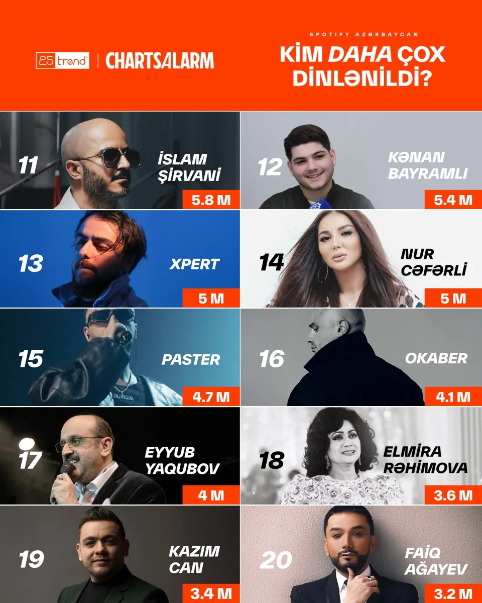2025-ci ildə “Spotify”ın Azərbaycan seqmentində ən çox dinlənilən sənətçilər müəyyənləşib.