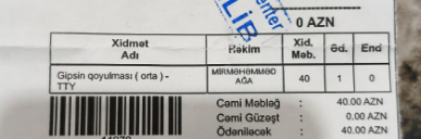 1 saat həkimi gözlədikdən sonra həkim gəldi və rentgen lazım olduğunu bildirdi. Rentgenə görə isə 50 manat ödəniş etdim. Daha sonra gipsin qoyulması üçün isə 40 manat ödəniş etdim.