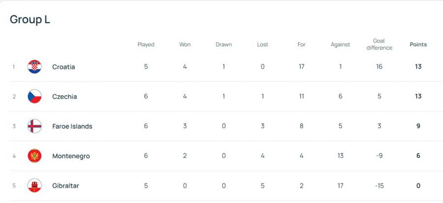L qrupunda Xorvatiya Çexiya ilə bərabərə qalıb, Farer adaları Monteneqronu 4:0 hesabı ilə məğlub edib.