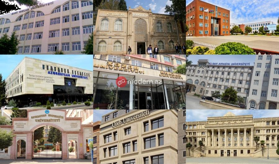 Azərbaycan Texnologiya Universiteti – 48,7 faiz, Bakı Mühəndislik Universiteti – 35,5 faiz, Azərbaycan Universiteti – 47,1 faiz, Xəzər Universiteti – 44 faiz, Bakı Avrasiya Universiteti – 46 faiz, Azərbaycan Kooperasiya Universiteti – 47,3 faiz, Qərbi Kaspi Universiteti – 44,3 faiz, Azərbaycan Texniki Universiteti – 46,8 faiz.
