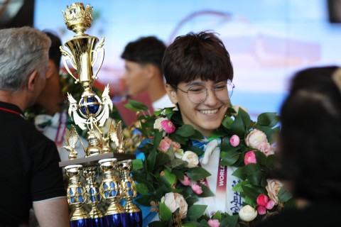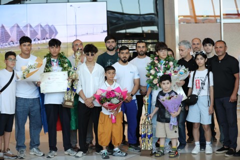 İdman.biz xəbər verir ki, yarışda yüksək nəticə qazanan idmançılarımız Heydər Əliyev adına Beynəlxalq Hava Limanında böyük coşqu ilə qarşılanıb.