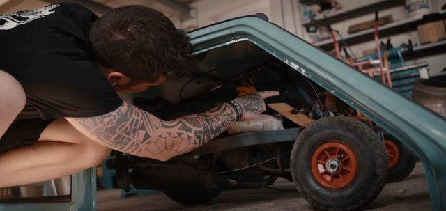 Kəsilən hissəyə təkər və avtomobil matoru yenidən dizayn edilərək əlavə edilib.