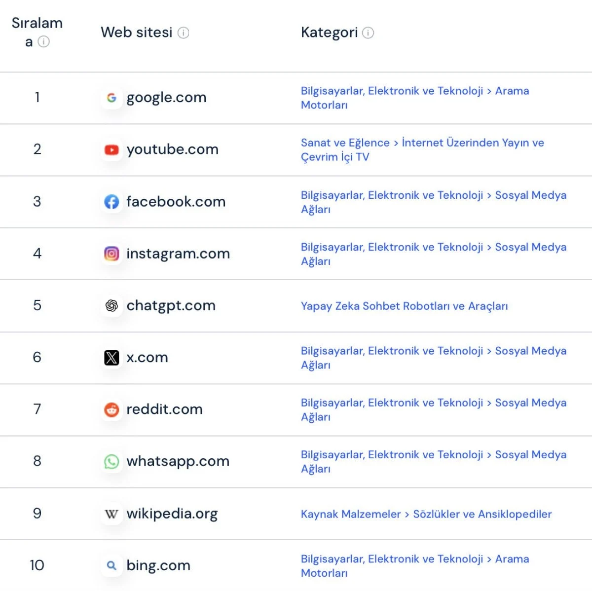 Gündəlik milyardlarla istifadəçinin ziyarət etdiyi platformaları özündə əks etdirən siyahı, ən yaxşı saytın dəyişməz qaldığını göstərib.