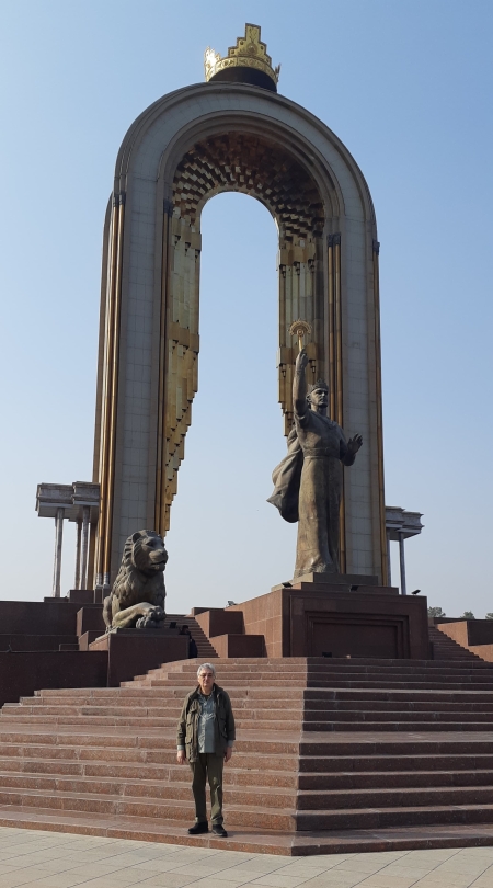 Şəhərin mərkəzində ölkənin rəmzi sayılan Şah İsmayıl Somoninin şərəfinə əzəmətli abidə kompleksi ucaldılıb. Yadıma düşdü ki, keçən səfər Baş nazirlə gələndə gecə vaxtı gördüyümüz hündür yeni tikili məhz bu abidə imiş. Taciklərin Milli qəhrəmanı olan Şah İsmayıl Somoni ölkənin qurucusu sayılır. Tacik pul vahidi də onun şərəfinə “somoni” adlanır. Heykəlin yerləşdiyi möhtəşəm kompleksin lap üstdəki pik nöqtəsində şah tacına bənzər iri fiqur qoyulub. Heykəlin önündəki “gül xalçasının” ətrafında, yaxınlıqda salınmış Orta əsrlər idilliyasını xatırladan “Ustad Rudəki Bağı”nda insanlar gəzişir, şəkil çəkdirir, istirahət edirlər. Somoninin heykəlinin yanında isə daimi qarovul çəkən polis postu qurulub. Mən polisə yaxınlaşıb maraqlandım ki, burda post qurub heykəli qorumaq nə üçündür, qranit abidəyə nə təhlükə ola bilər? O isə cavab verdi ki, baxın, kompleksin ən üst hissəsində gördüyünüz nəhəng şah tacı - təmiz qızıldandır!