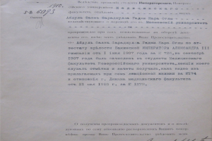 O bildirib ki, Odessa Vilayəti Dövlət Arxivində keçmiş nazir Əbülfəs Qarayevin babası, Odessadakı Novorossiya Universitetinin tibb fakültəsini bitirmiş Əbülfəzl Fərəcullah oğlu Hacıqarayevin (1884-1952) tələbə şəxsi işi saxlanılır" "Buradakı sənədlərdən aydınlaşır ki, onun atası 1893-cü il doğumlu Fərəcullah Hacı Qara oğludur. Əbülfəzl Qarayevin ilkin sənədlərinin, demək olar ki, hamısında onun soyadı “HACI-QARAYEV” yazılıb Sənədlərin surətlərini aşağıda təqdim edirəm.
