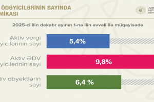 2025-ci il dekabrın 1-nə Azərbaycanda aktiv vergi ödəyicilərinin sayı ilin əvvəli ilə müqayisədə 5,4 faiz artaraq 850,9 min təşkil edib.