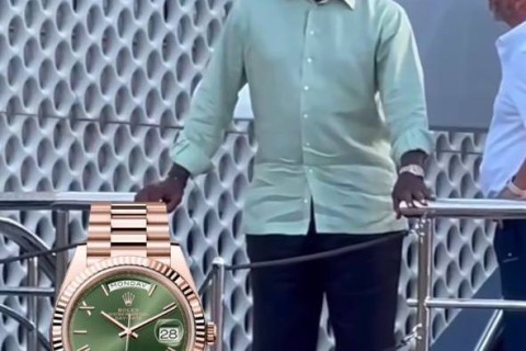 "Rolex Day Date" modeli 18 karatlıq "Everose" qızılından hazırlanıb. Saatın sferblatı yaşıl-zeytun çalarında olub.